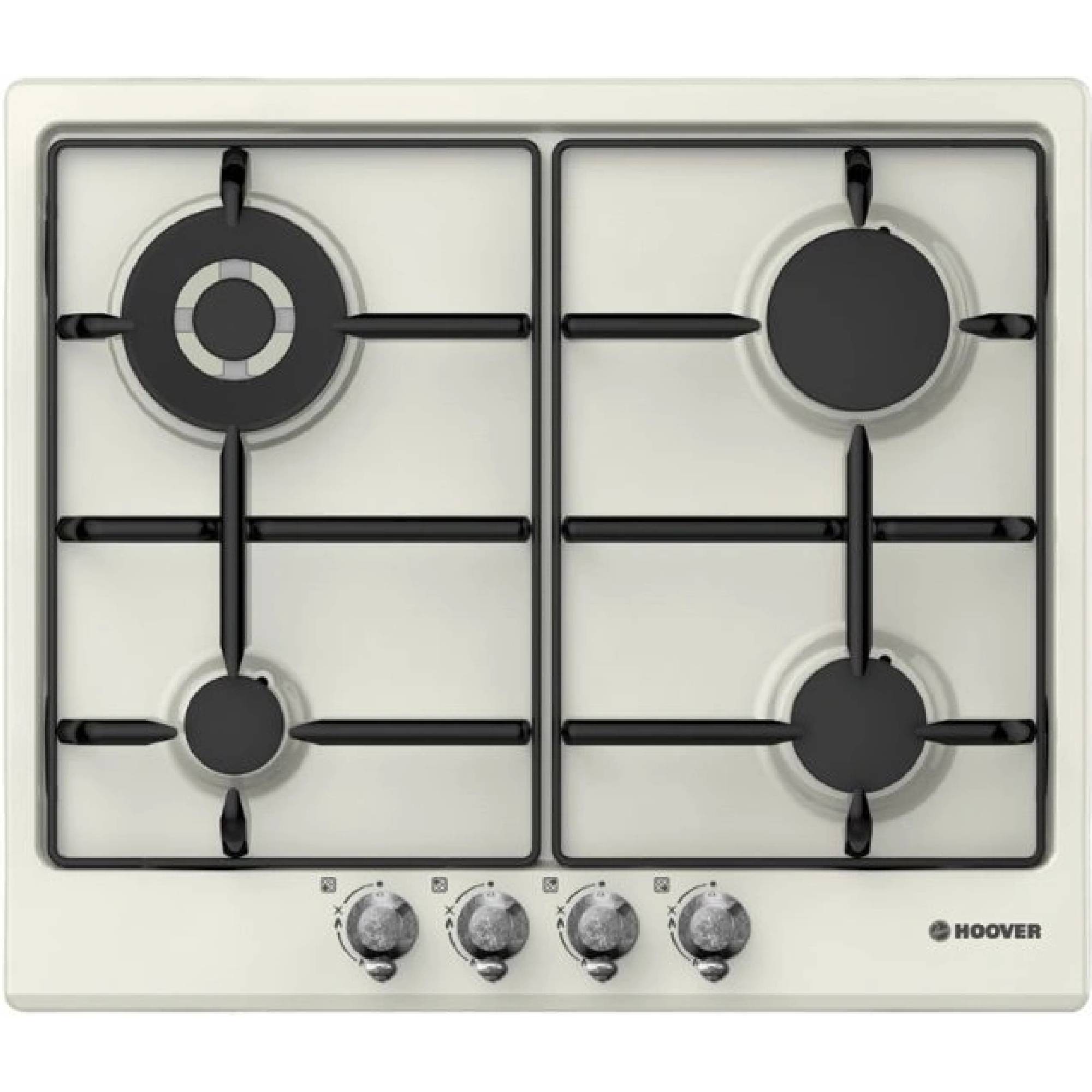 Plynová varná deska Hoover HGH 64 SF WA v barvě slonová kost. Má k dispozici 4 plynové hořáky různého průměru a výkonu. Všechny hořáky jsou vybaveny bezpečnostní pojistkou proti úniku plynu. Pro pohodlné ukládání hrnců na varnou plochu jsou k dispozici 2 elegantní smaltované mřížky. Vpředu se nachází intuitivní ovládání prostřednictvím čtyř otočných voličů s integrovaným elektrickým zapalováním. Šířka 59,5 cm.