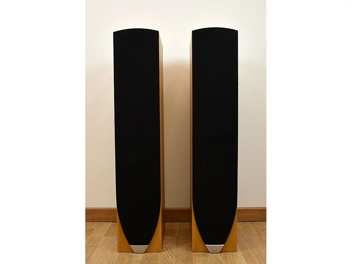 Řada E8 zahrnuje šest odlišných modelů, mezi nimiž vyniká E850 jako elegantní a štíhlý reproduktor stojící na podlaze. Konstrukci umocňuje plastové hledí umístěné na horním panelu – estetický detail, který může také přispět k akustické optimalizaci. Systém se vyznačuje 2,5cestným designem, využívajícím dva ovladače z kompozitních kuželů s plastovými tryskami na jádru a hedvábnou kopulí tweeteru. Křížový filtr postupně řídí signály: jeden ze dvou wooferů tlumí v nižších středních frekvencích, zatímco druhý tento rozsah posiluje. Reproduktor stojí na jedinečně navržených nohách, bezpečně připevněných k pevné a tuhé skříni pomocí šroubů. Pružná ochranná mřížka, schopná ohýbání až o 90°, dokonale zapadá do konstrukce a pomáhá snižovat ohyb hran.